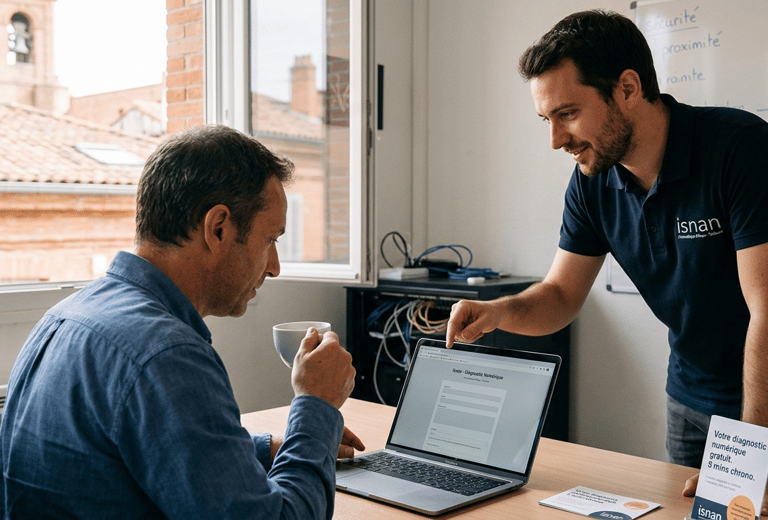 Parce qu'un site web performant repose sur une infrastructure solide, Isnan élargit son horizon. Maintenance, sécurité réseau et support technique : découvrez Isnan Informatique, votre partenaire d'infogérance local.